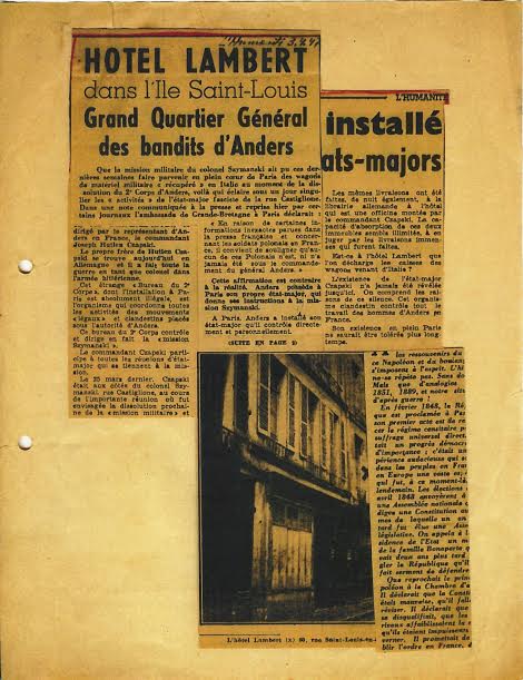 W „L’Humanité” zamieszczono fotografie domu zaznaczając krzyżykiem nasze mieszkanie. NKWD bezkarnie grasowało po ulicach Paryża porywając ludzi. Ich wpływy były tak wielkie, że przy demobilizacji poradzono mi, bym podał jako miejsce urodzenia Warszawę a nie Mińsk Litewski, by nie dawać im pretekstu. Byłem bowiem dość znany ze swej antykomunistycznej działalności przed wojną.