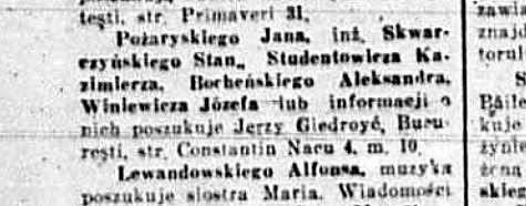 W naszym archiwum znajduje się zbiór listów Jerzego Giedroycia pisanych przezeń z Bukaresztu w latach 1939-40 do różnych osób. Są to bardzo słabo czytelne kopie, pisane ręcznie przez kalkę. Z dotychczas odcyfrowanych listów wynika, że od października 1939 r. Giedroyc był zaangażowany w redagowanie ukazującego się w Bukareszcie "Kuriera Polskiego", zamawiał teksty, sugerował tematy i poszukiwał współpracowników. Też za pomocą ogłoszeń takich jak to, opublikowane w tej gazecie: